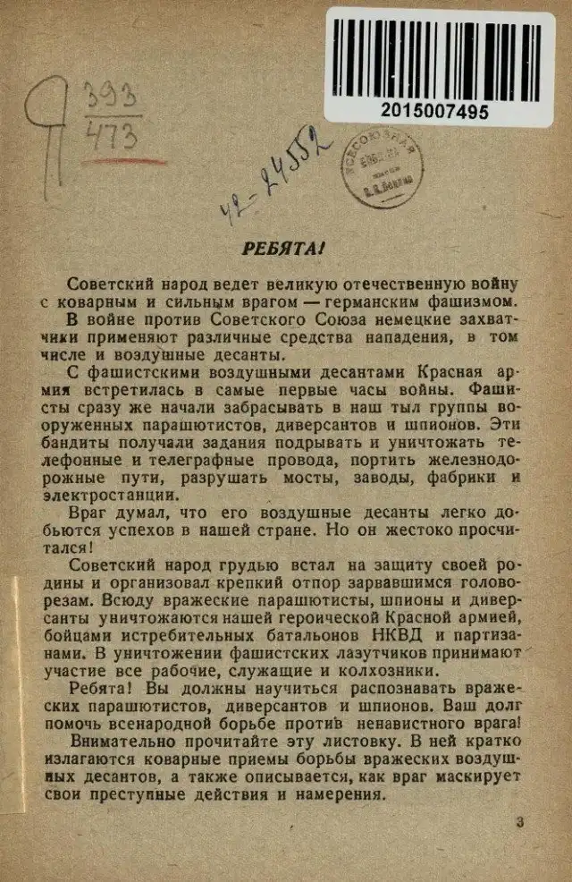 1941. Учись распознавать вражеских парашютистов, шпионов и диверсантов!