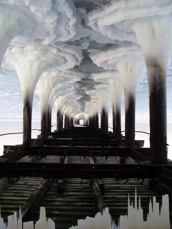 Перевернутое фото причала заледеневшего озера