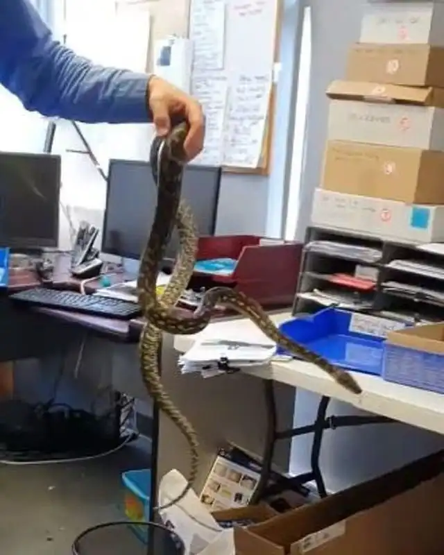 Стоит отметить, что сам офис расположён возле промзоны, где водятся змеи, ввиду чего Маккензи предположил, что полутораметровый питон проник в здание через гаражную дверь, которая открыта в рабочие часы. В итоге непрошеного гостя вынесли из офиса и выпустили на волю.