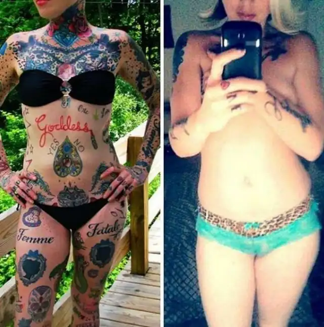 К слову, как говорит сама Эшли, она любит все свои татуировки. На ее теле больше нет "чистых" мест - если не считать ступни. Но, как я считаю, скоро и они попадут "под раздачу". Конечно, у каждого свои вкусы, но подобное кажется неадекватным. Создается впечатление, что человек страдает от заболеваний психики. Возможно, девушке не хватало внимания, но привлекать его таким образом - не самый лучший вариант. А теперь представьте, каково ей будет, если она передумает и решит их свести? Хотя, передумывать уже поздно - дамочке 44 года.