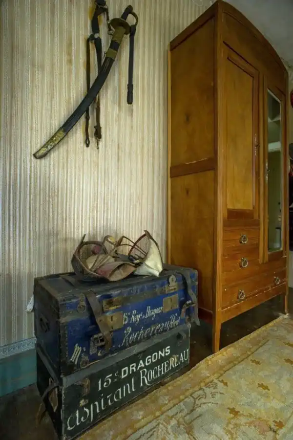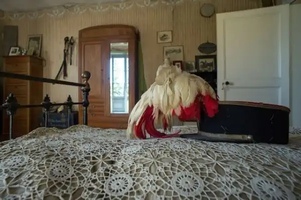Повсюду в комнате стоят фотографии Юбера. Кроме того, его вещи остались лежать там, где он их когда-то оставил — например, кепи, лежащая на кровати.