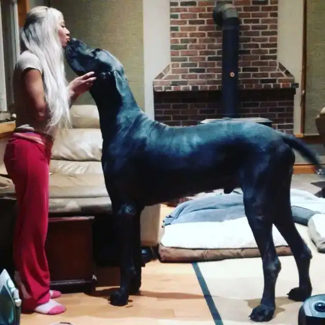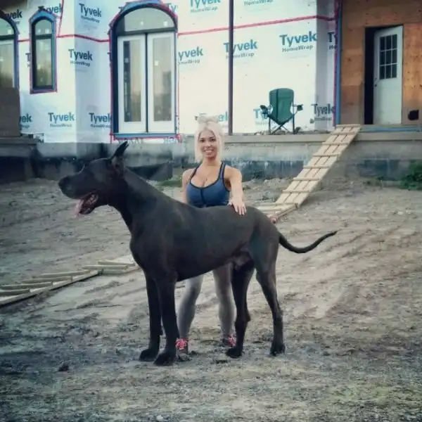 35-летняя Дженни Саккочча из Онтарио, Канада, выглядит рядом со своим питомцем совсем крошечной. Девушка — большая любительница собак. Они с мужем живут в огромном доме, где компанию им составляют несколько четверолапых. Но один из питомцев — выдающийся во многих смыслах. Это богатырь Гром — немецкий дог весом 95 кг.