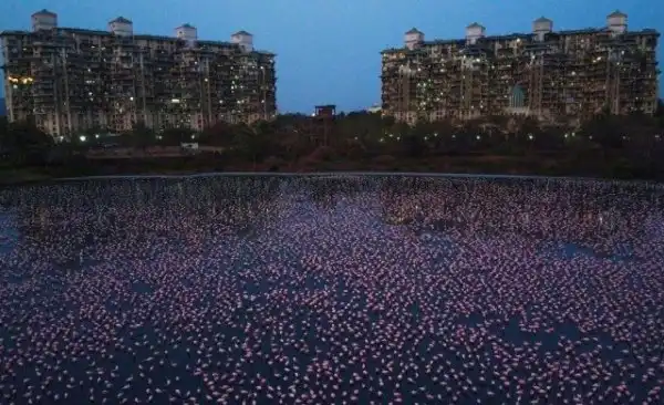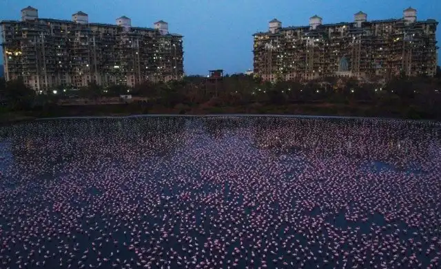 Фламинго перестали бояться людей и прилетели на озеро в Мумбаи.