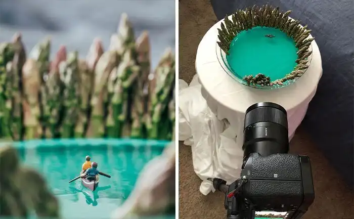 Для своих композиций Эрин использовала продукты, подушки, бумажные пакеты, модельки машин, разделочные доски и миниатюрных человеческие фигурки (без них было бы не так интересно!).