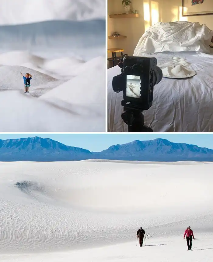 Фотограф Эрин Салливан (Erin Outdoors) решила, что карантин ее не остановит и она продолжит делать снимки природных пейзажей - но используя оптические иллюзии и найденные дома предметы. И у нее получилось.