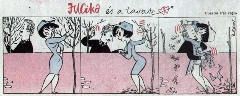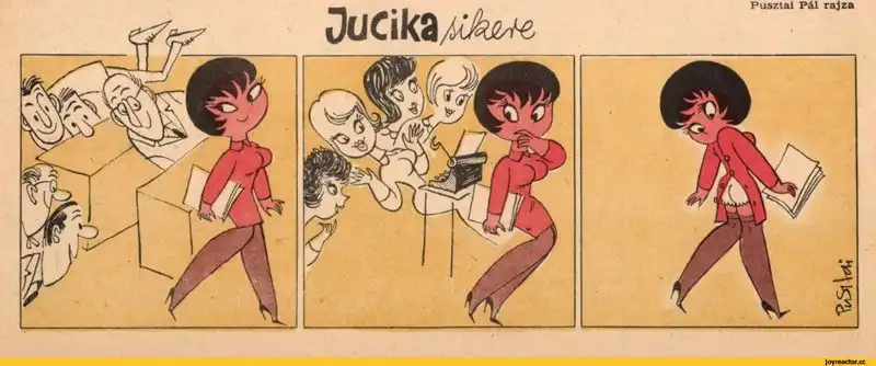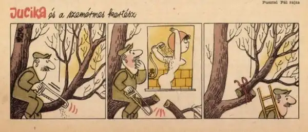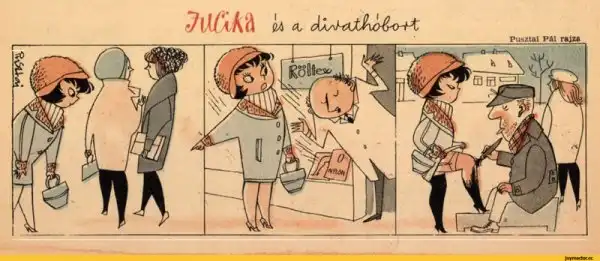 Венгерский художник-мультипликатор Пал Пуштай (Pusztai Pal 1919-1970) в 60-70 гг., он никогда не называл свои любимые творения «комиксами», хотя по сути серии из трех картинок, в которых развивается небольшой сюжет, ближе всего именно к этому виду творчества. Знаменитый венгерский художник-график начинал карьеру очень необычно: в качестве офицера венгерских Государственных железных дорог он занимался в основном тем, что делал плакаты для нужд своей конторы. Затем всерьез увлекся рекламой и только после 35 лет опубликовал первые карикатуры.