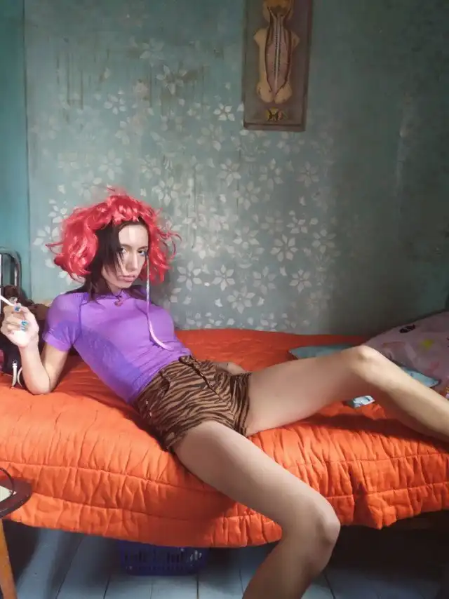 Девушка, фотоаппарат, фантастическая поза