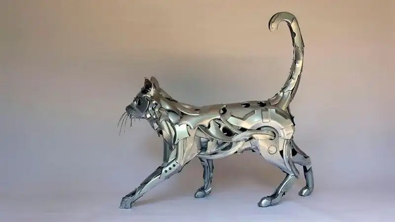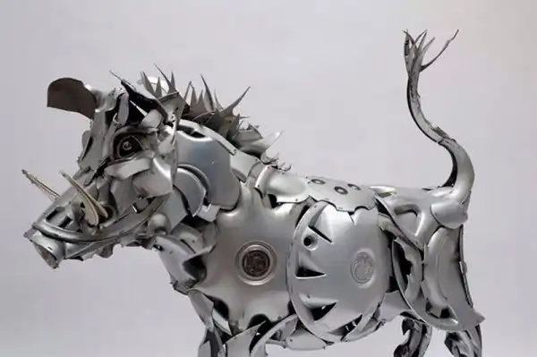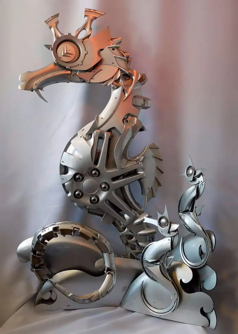 Птолемей Эрлингтон - скульптор из британского города Брайтон. Уже много лет он творит свои работы из металлического мусора - колесных колпаков, старых запчастей, сломанных тележек из супермаркета. С помощью сварочного аппарата он превращает их в удивительных животных.
