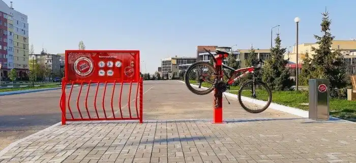 В маленьком городе Павловск Воронежской области установили на площади станцию технического ремонта велосипедов с питьевым фонтаном и зоной отдыха.