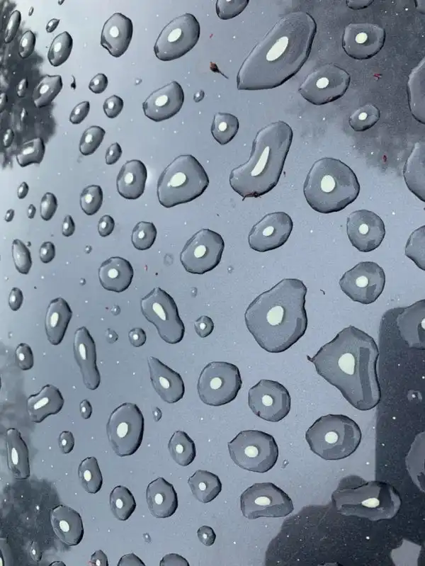 Капли на машине собрали внутри себя пыльцу
