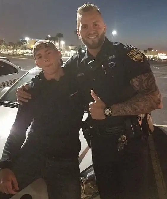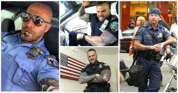 Все то у них там, в этой Америке, не как у людей - когда у нас видимых татуировок у служителей правоохранительных органов быть не должно, их копы демонстрируют полную раскраску, гордятся этим и позволяют с собой фотографироваться всем желающим...
