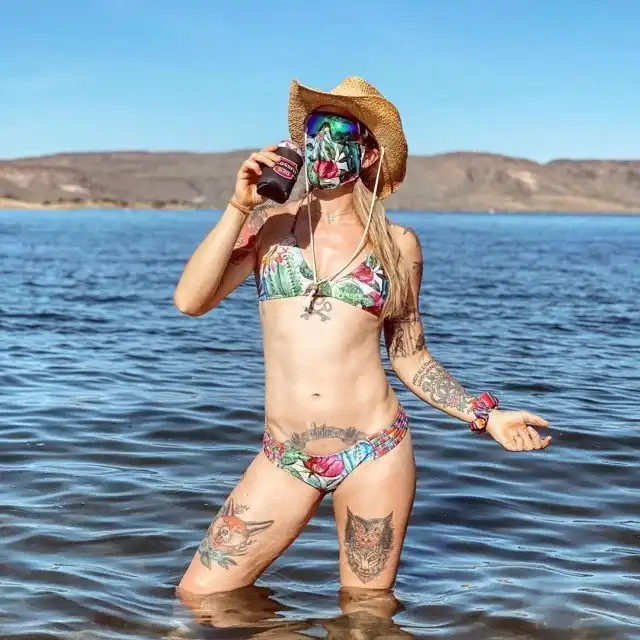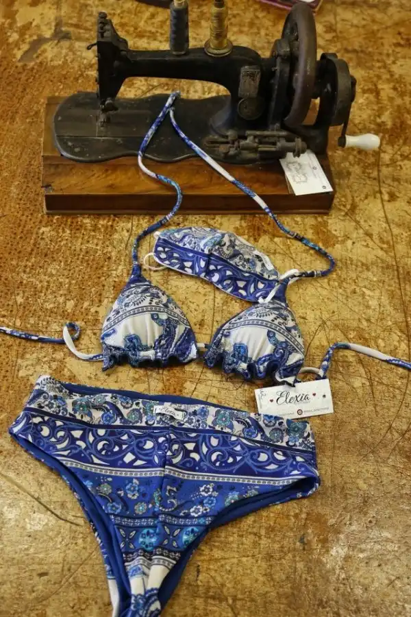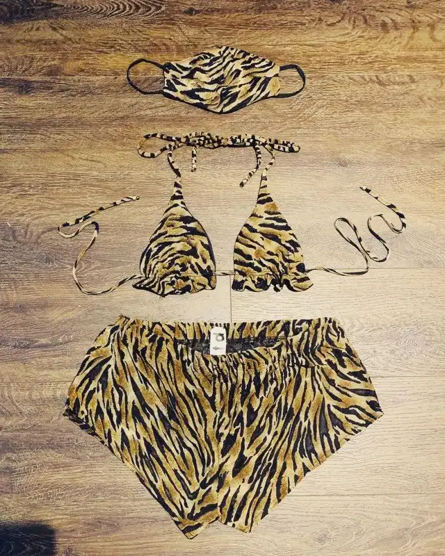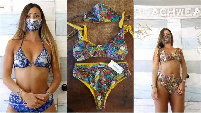 Итальянский дизайнер Тициана Скарамуццо, владелец небольшой ремесленной мастерской Elexa Beachware, находящейся в Сенигаллии, начала производить трикини. Это бикини в комплекте с маской для лица.