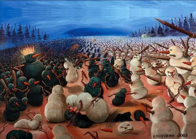 Николай Копейкин - современный художник, музыкант, один из основателей секты "колдовские художники" (колхуи) и киностудии "НОМФИЛЬМ". Родился в 1966 году в Белгороде, однако, сам утверждает, что он с 1936 года и уроженец Пухтограда. И только затем он перебрался в Нерезиновую, а творит и проживает в данный момент в Поребрик-Сити. Такой вот креативный человек. :) Картины его - это действительно шедевр, многие из которых уже давно разобрали на принты для футболок и аватары. Художник-примитивист продолжает лучшие художественные традиции и бесконечно радует нас юмором, сатирой, которыми пропитаны его работы. Это надо видеть.