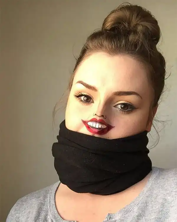 Сидя дома во время карантина, народ с ума сходит от безделья и придумывает все новые развлечения. Сначала люди надевали на себя постельные принадлежности, затем сумки для покупок, а теперь они старательно рисуют миниатюрные носы и рты на своих лицах.