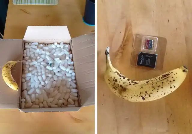 Мне прислали такую коробку. Банан на фото для сравнения. И вот что лежало внутри коробки