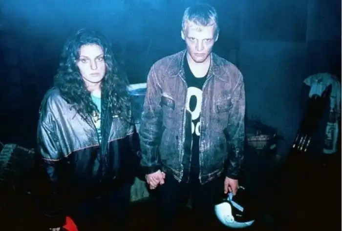 10. Марина Могилевская и Алексей Серебряков на съёмках фильма "Распад", 1990 год.