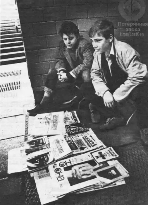 12. Школьники торгуют книгами и журналами в подземном переходе, Москва 1992 год.