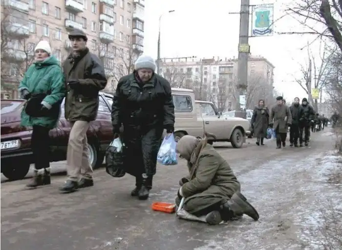 19. Женщина просит милостыню. Москва, 1999 год.