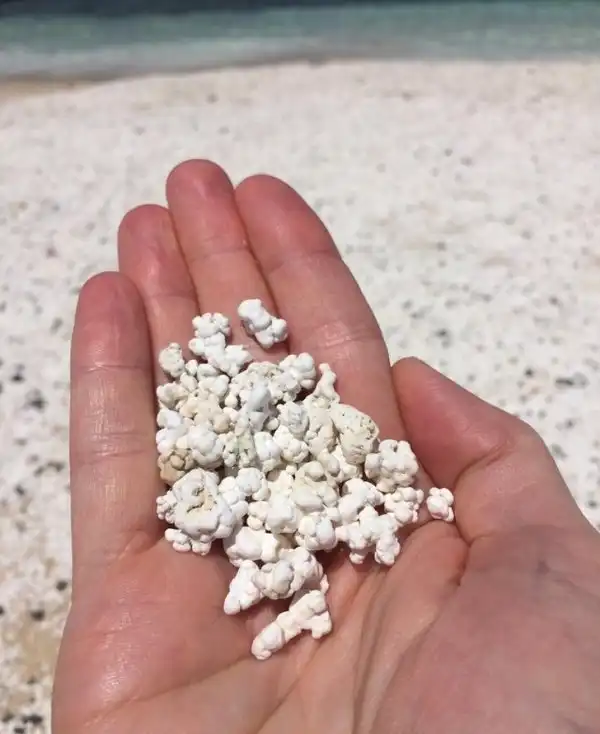 Кусочки кораллов на пляже острова Фуэртевентура, выглядят как попкорн