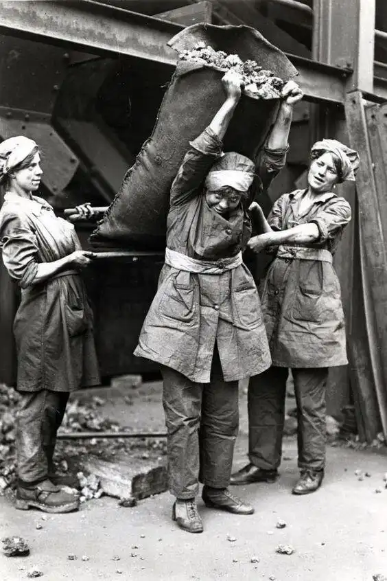 Чем сейчас занимается подавляющее большинство феминисток? Они истошно кричат на улицах - как вот эта мадам, заявляют, что все мужики пытаются сделать из них рабынь, требуют равноправия (хотя оно давно уже есть), показывают обнаженную грудь на улицах и строят из себя не пойми кого. В общем, занимаются конкретным бредом. А вот эти фотографии, дошедшие до наших дней, показывают обычных девушек, понимающих, что они могут работать на одном уровне с мужчинами. Конечно, такие есть и сейчас. Например - Наталья Ченчик, работающая на тракторе. К сожалению, таких становится все меньше и меньше.
