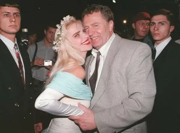 Владимир Жириновский и звезда фильмов для взpocлых "Чиччолина" (Илона Шталлер), Москва, 1995 год