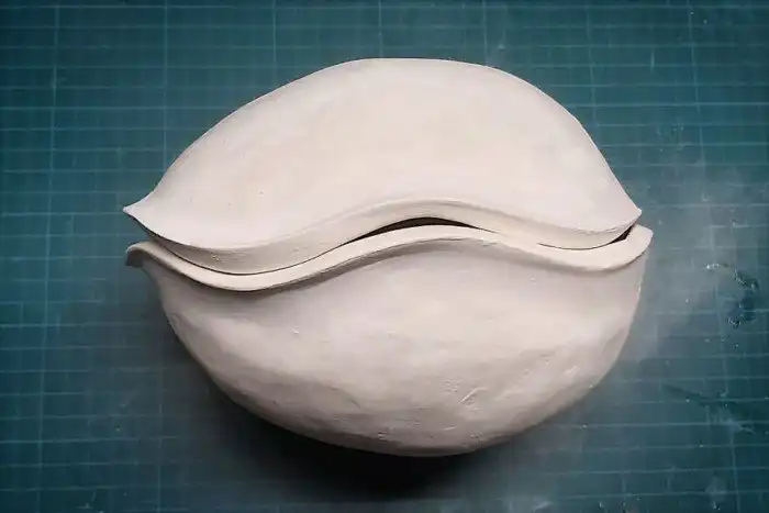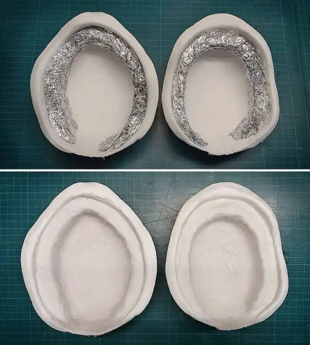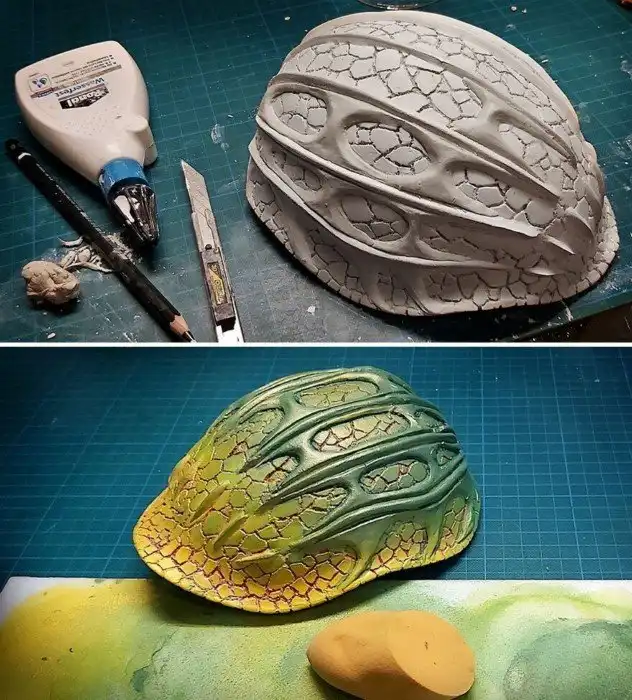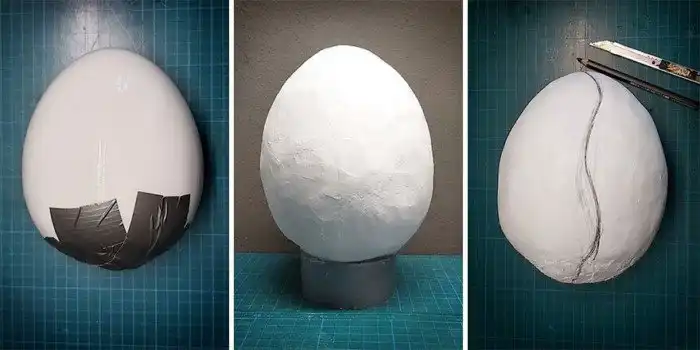 Процесс начался с фарфорового яйца, которое девушка покрыла гипсовыми бинтами, и разрезала вдоль линии рта