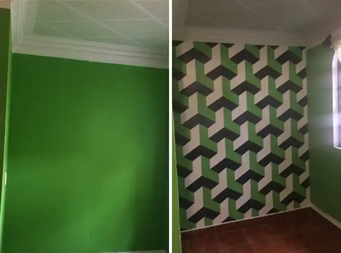 16. "Стало скучно, поэтому решила покрасить комнату. 3D-дизайн нашла в Гугле!"