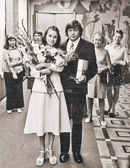 16. Свадебное фото Николая Караченцова и Людмилы Поргиной. Гагаринский ЗАГС, 1975 г.