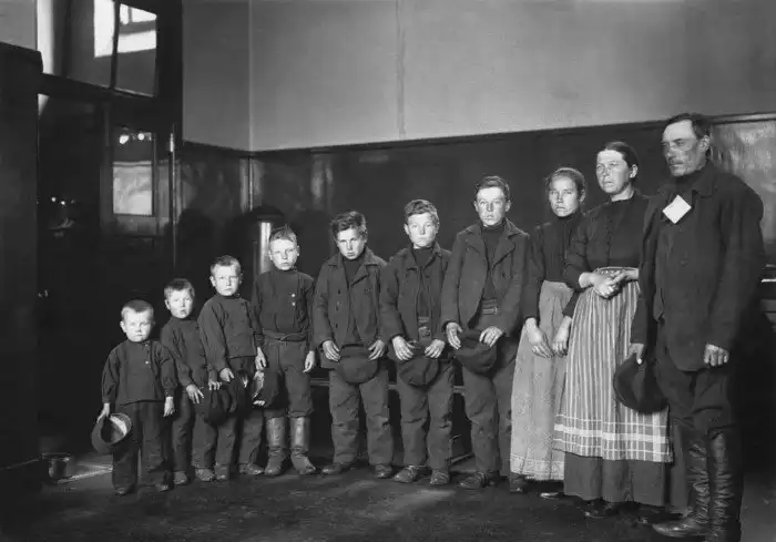 37. 1905 год. Иммигранты из России (немецкого происхождения) Якоб Митхельштадт с семьей: семью сыновьями и одной дочерью.