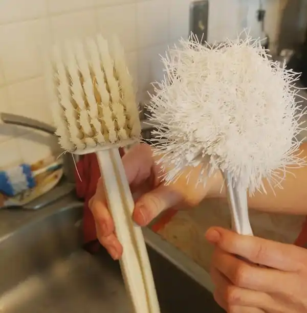 Что случилось с дешевой щеткой за два года использования (справа) и как выглядит качественная, которой пользовались 15 лет