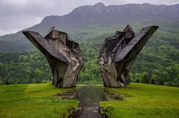 Монумент Тьентиште в форме крыльев - самый известный и популярный в прошлом памятник Югославии