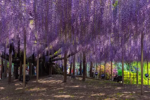 Цветущая 144-летняя глициния в японском парке Асикага