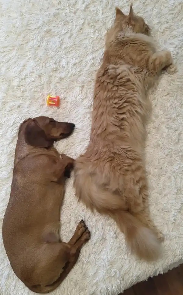 Такса и мейн-кун, которые еще даже не достиг зрелости