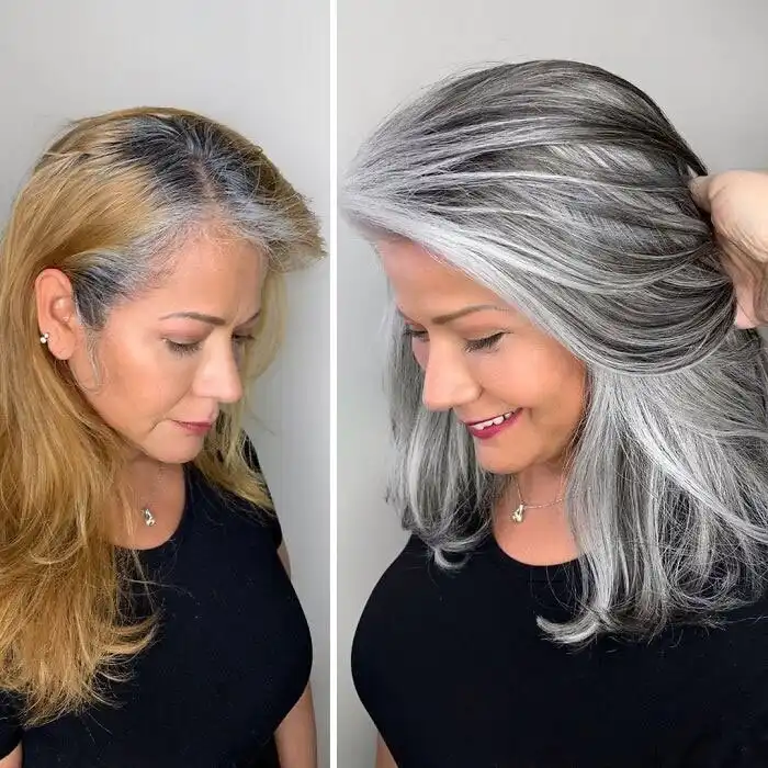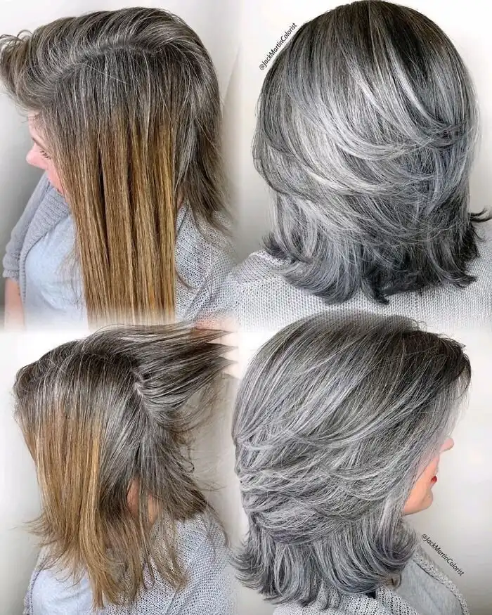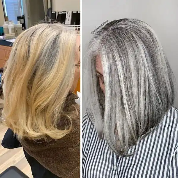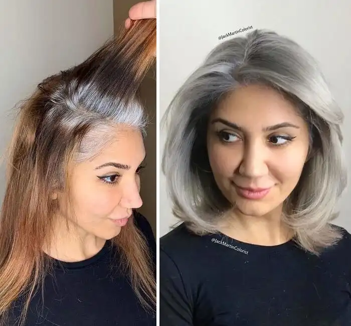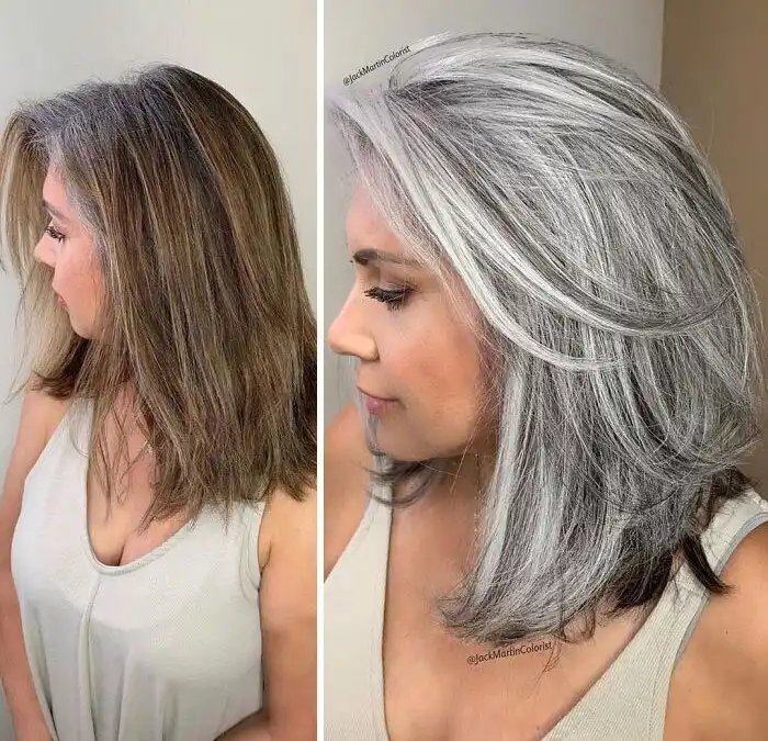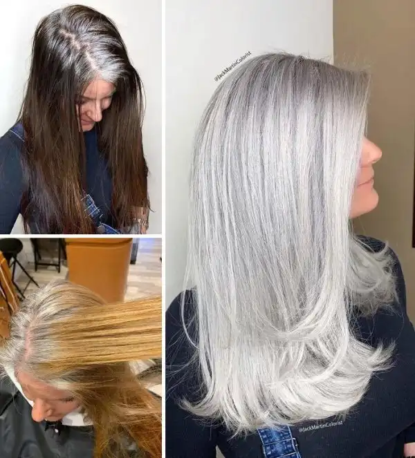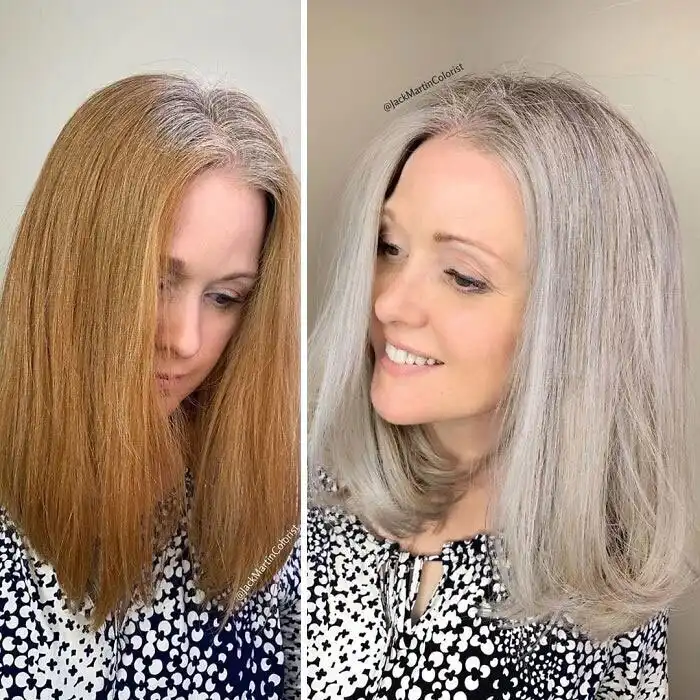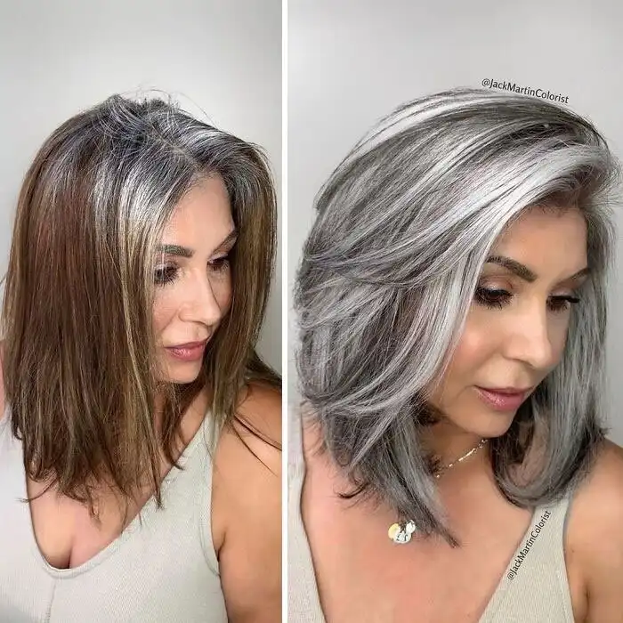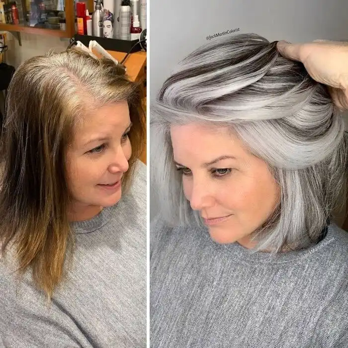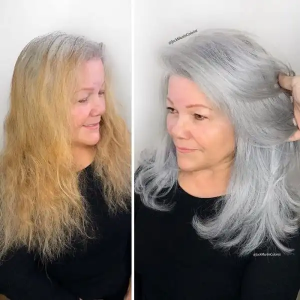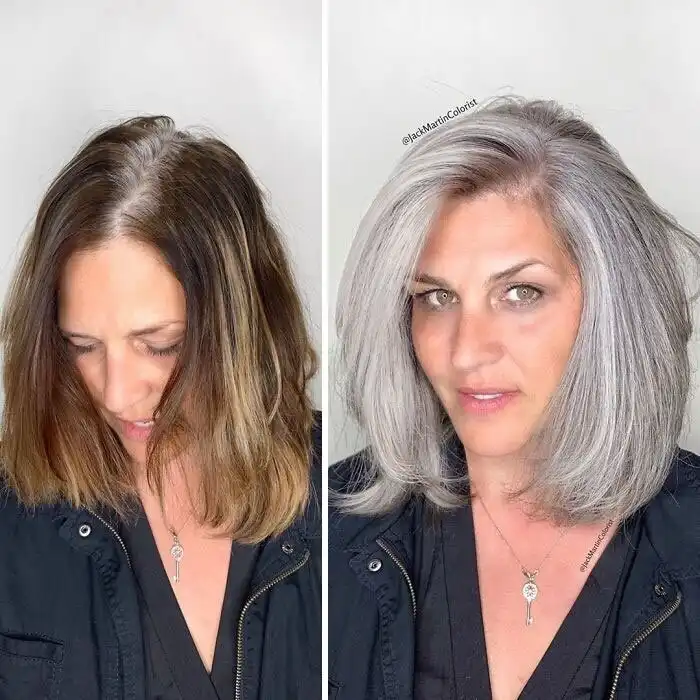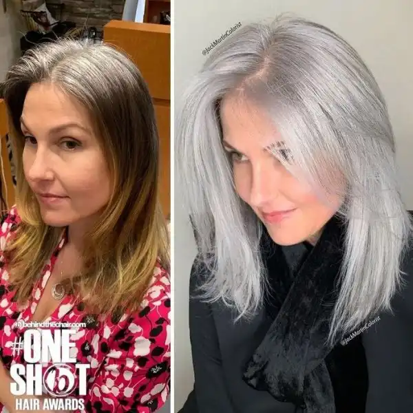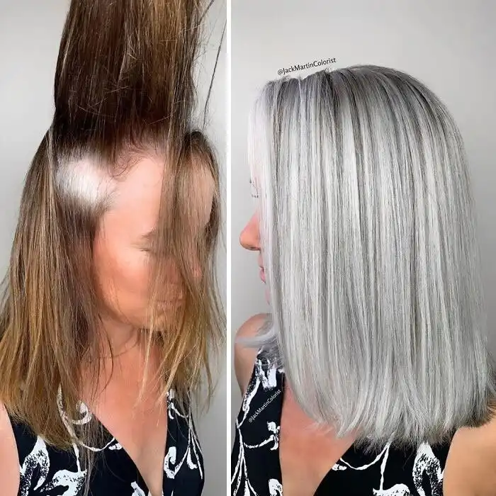 Парикмахер-колорист Джек Мартин из Калифорнии учит своих клиенток не стыдиться седины, а гордиться ей! Придуманный им серебряный тон для окраски волос пожилых дам позволяет не заботиться об отросших корнях и с гордостью демонстрировать миру свою великолепную седину!