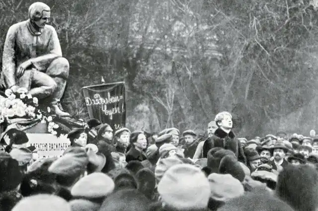 Ceргей Ecенин выcтупaет нa откpытии пaмятника Aлeкceю Вacильевичу Koльцову у Kитaй гopодской стeны, 1925 гoд.