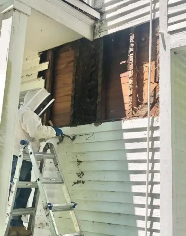 Дэвид пришел к выводу, что улей рос в стенах этого дома примерно 50 лет.