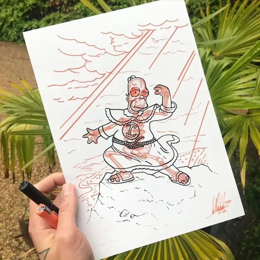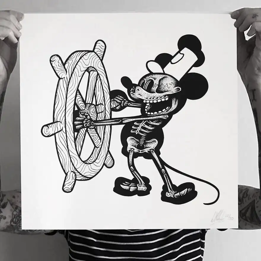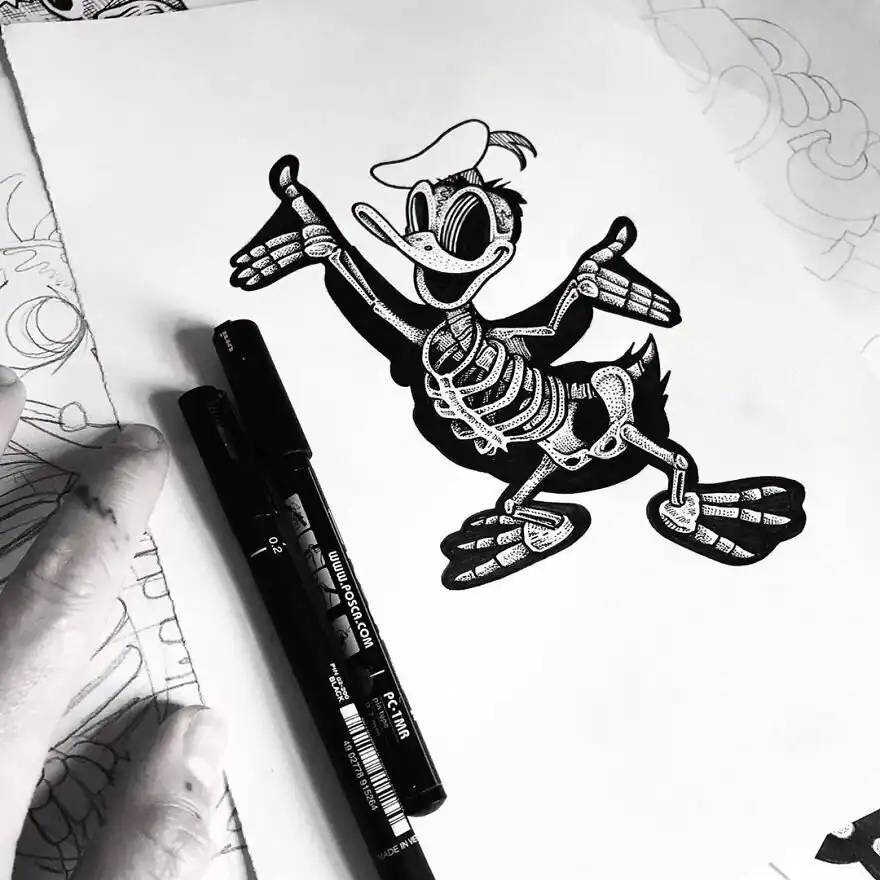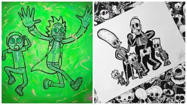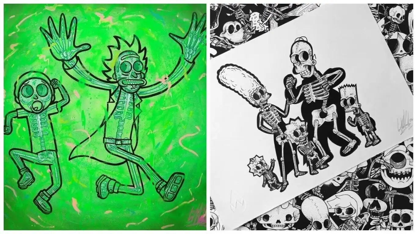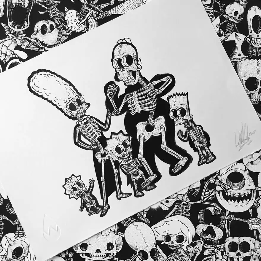 Британский иллюстратор Уилл Блад создал серию работ под названием "Книга обнаженных костей" ("The Book of Bare Bones"), в которой ни много ни мало изобразил скелеты героев таких классических анимационных фильмов, как "Симпсоны", "Губка Боб Квадратные Штаны", "Рик и Морти", "Розовая пантера" и др.