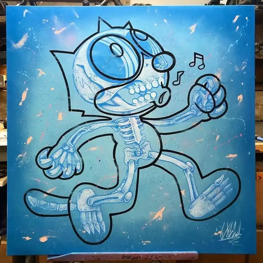 Первую работу из этой серии Уилл Блад нарисовал в 2013 году, и с тех пор коллекция рентгеновских мультяшек постоянно пополняется.