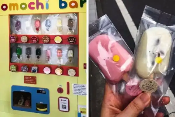 Автомат с японскими традиционными сладостями, моти, которые выполнены в виде мороженого