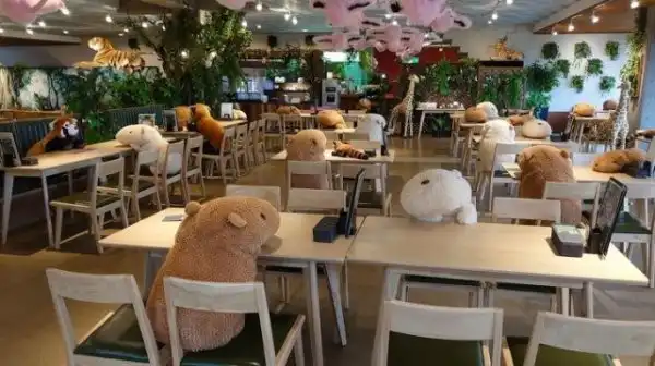 Кафе Gibbontei в парке Izu Saboten Animal Park. В этом заведении никому не будет одиноко