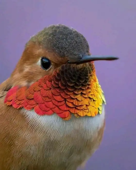 11. Охристый колибри с золотисто-красными переливающимися перышками