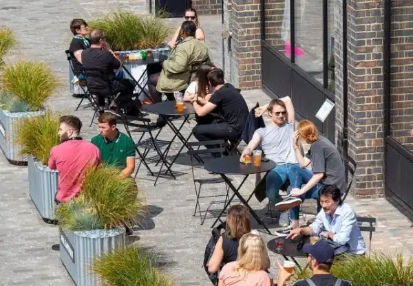 Уровень заболевания коронавирусом в Великобритании пошел на спад и постепенно отменяют карантинные меры. Недавно разрешили людям свободно перемещаться по стране без ограничений и встречаться с друзьями, но соблюдая социальную дистанцию. На днях в Британии открылись пабы и бары, но работают только на вынос. Люди, уставшие от ограничений, тут же выстроились в очереди перед питейными заведениями, и заполнили столики на террасах с пинтами пива в руках. А в следующем месяце планируют открыть отели и рестораны.