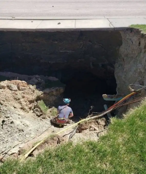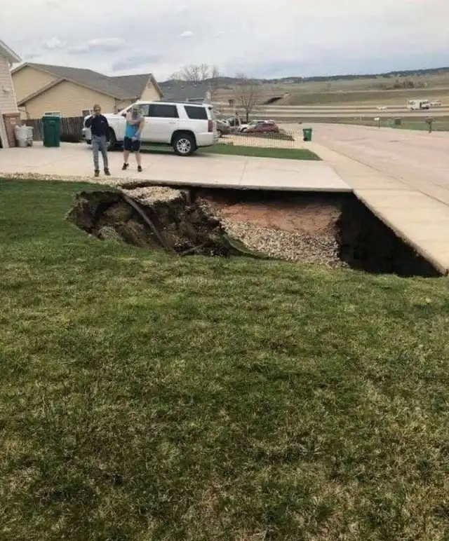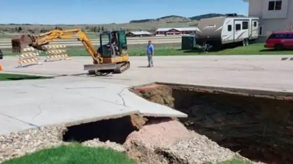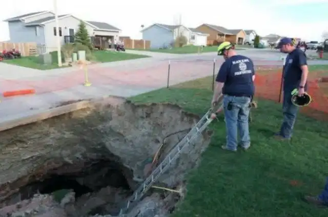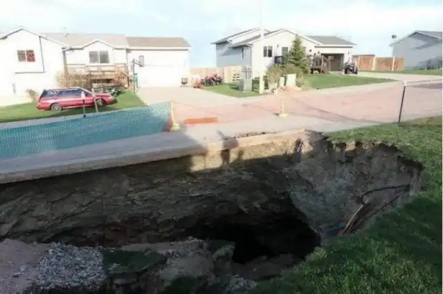 Прямо над пустотами стоят 12 домов и могут рухнуть вниз в любой момент. Жить в таких жилищах нельзя. Но как только стало об этом известно – цена на недвижимость в поселке упала до нуля.