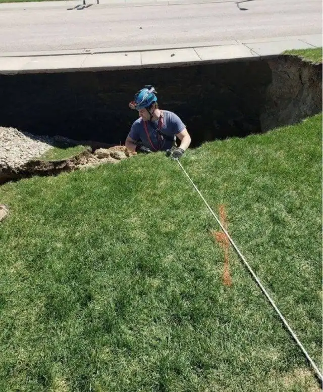 Оказалось, что много десятков лет назад на этом месте были гипсовые шахты. Когда спелеологи спустились вниз, они обнаружили огромные залы шириной 20-30 метров и высотой до 5 метров. Причем все эти пустоты совершенно без всяких крепежей тянутся на протяжении 600 метров под поселком на очень небольшой глубине.