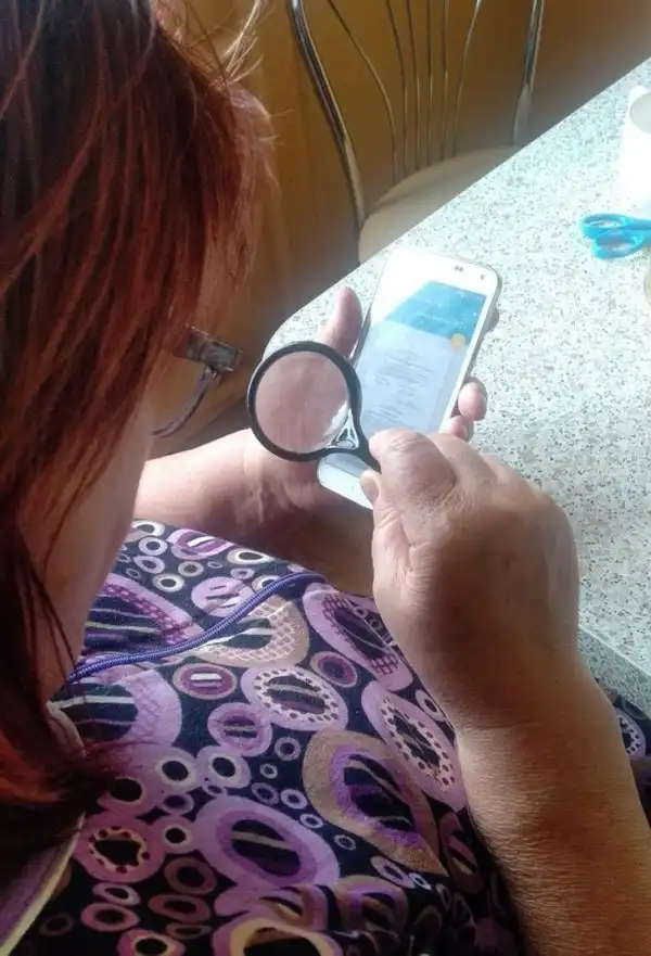 Сто раз показывал, как увеличить шрифт в телефоне, но ей все равно удобнее читать через лупу