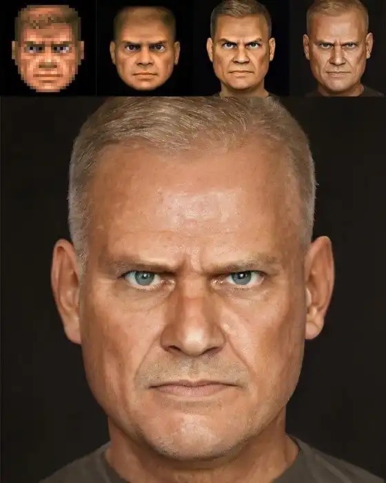 Портрет создан через Artbreeder на основе нескольких пикселей из оригинальной игры 1993 года.