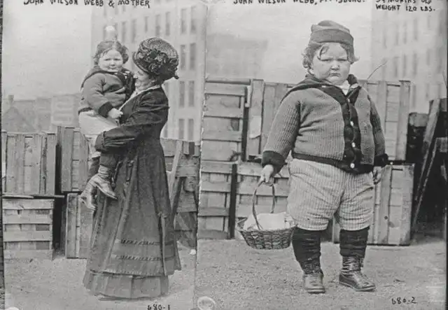 Питтсбург, 1909 год.Британский писатель Джон Уилсон Уэбб и его мать. В возрасте 2-х лет малыш весил 55 килограмм.