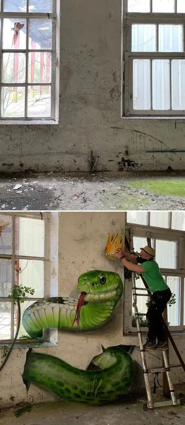 Своими удивительными 3D иллюзиями французский уличный художник Скаф фактически оживляет старые здания по всему миру.