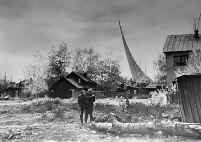 Вид на памятник «Покорителям космоса» из Алексеевского студгородка, 1966 год, Москва