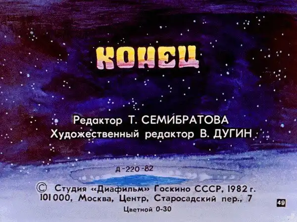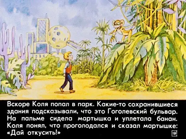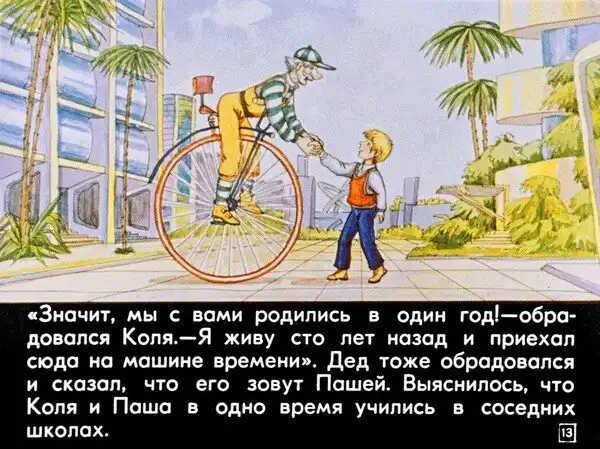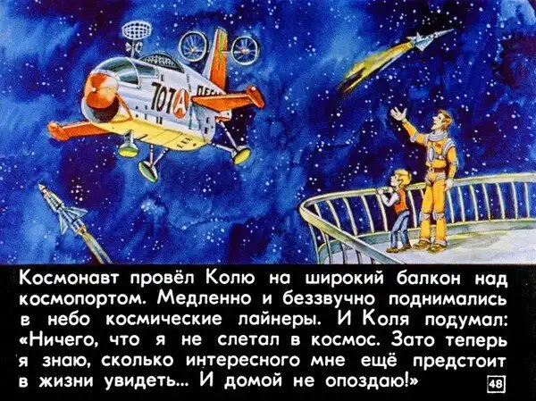 В 1982 году студия «Диафильм» выпустила одноименный фильм — «100 лет тому вперед. Коля в будущем», где описываются события книги только до момента прибытия Коли на космодром. Примечательно, что содержание диафильма практически идентично повести (в отличие от последующего фильма «Гостья из будущего»), за исключением лишь даты: в диафильме Коля попадает не в 11 апреля, а в 11 августа 2082 года.